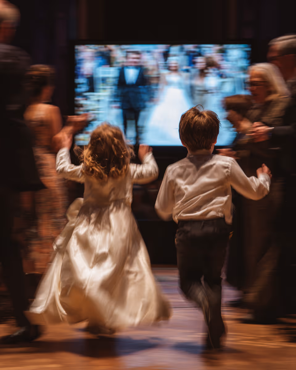 Every photo hits the big screen in real time. The room reacts together. The energy is electric.
